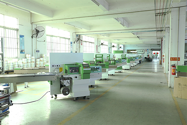 مصنع آلات التعبئة والتغليف التدفقية لقطة حقيقية